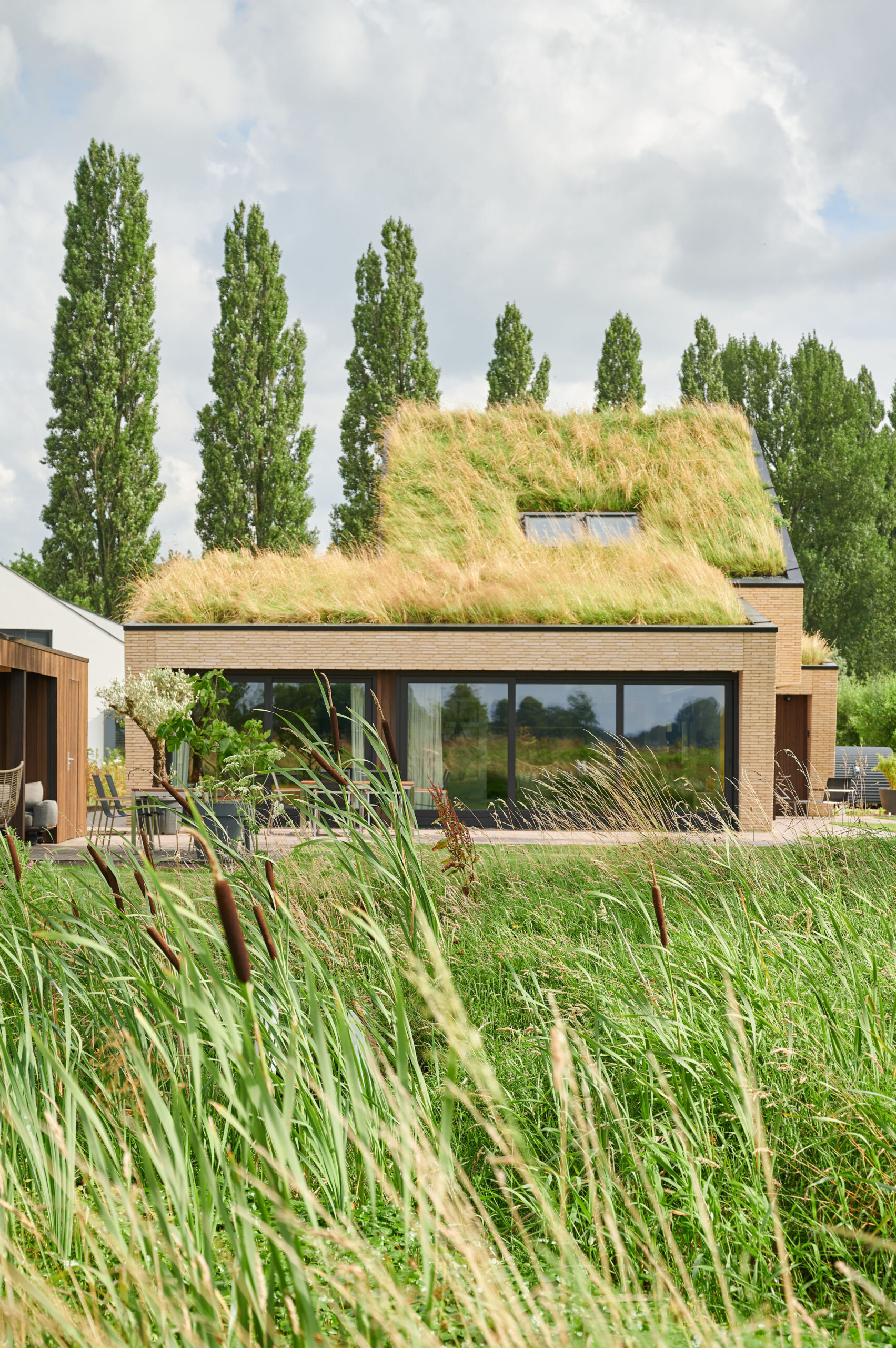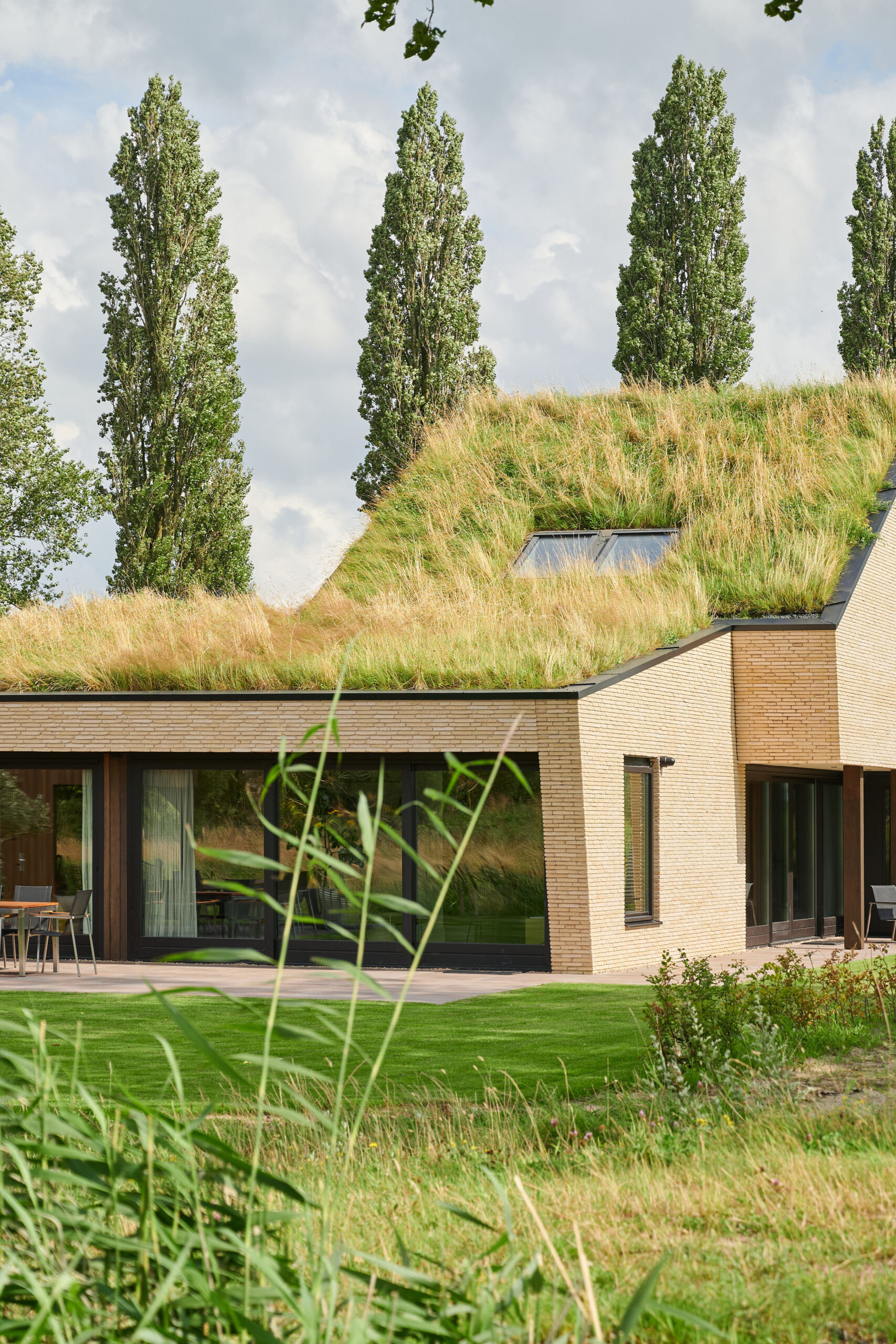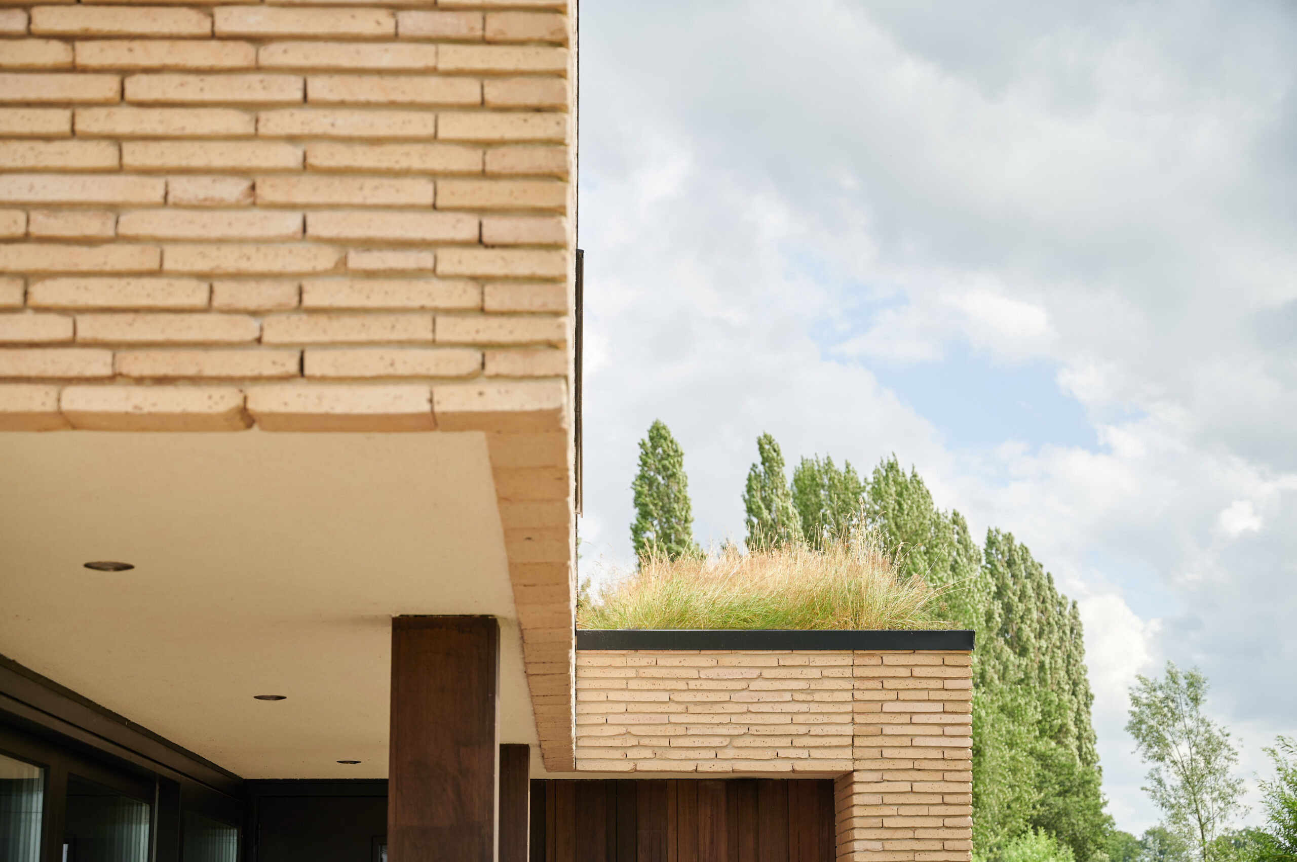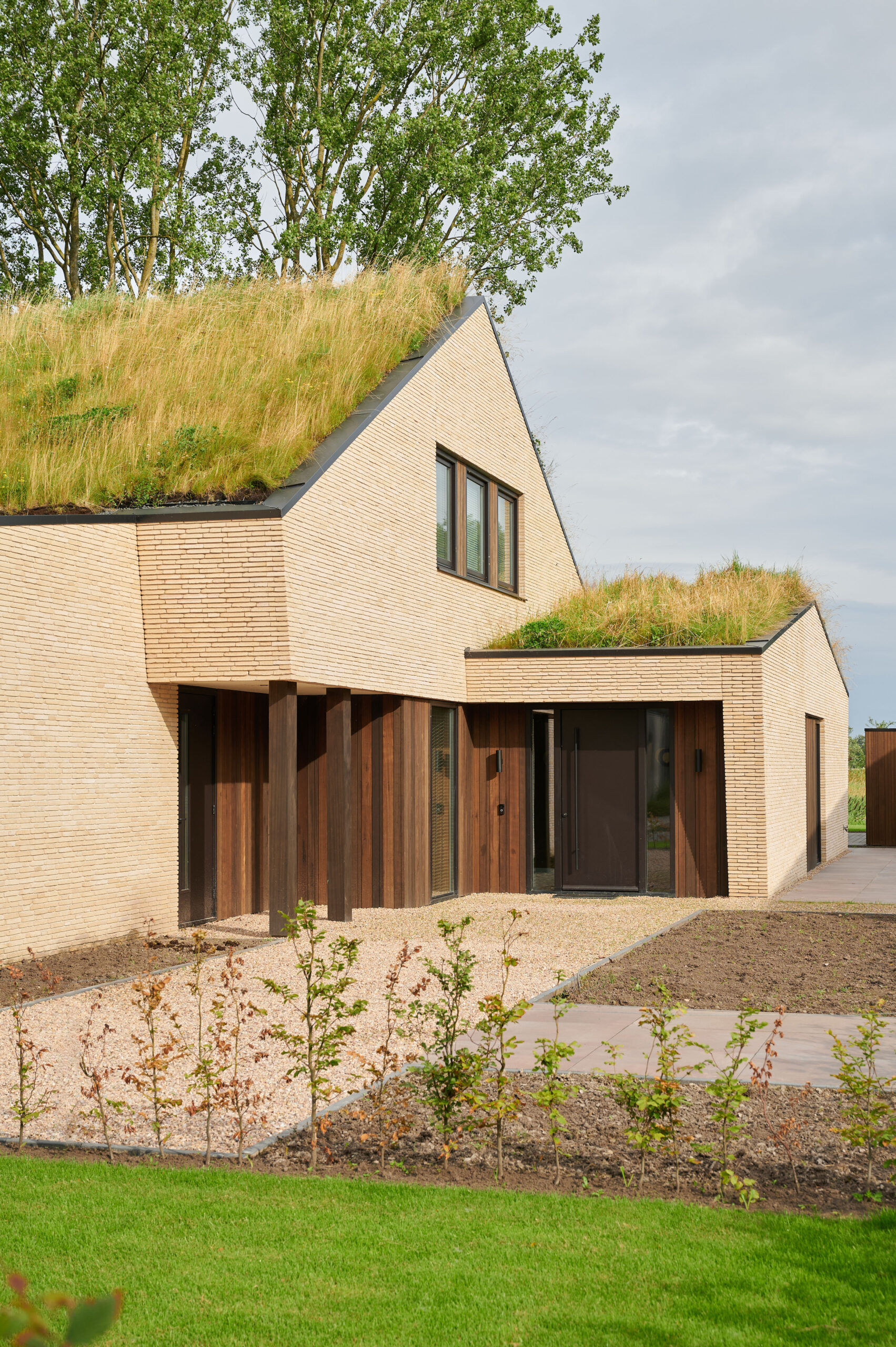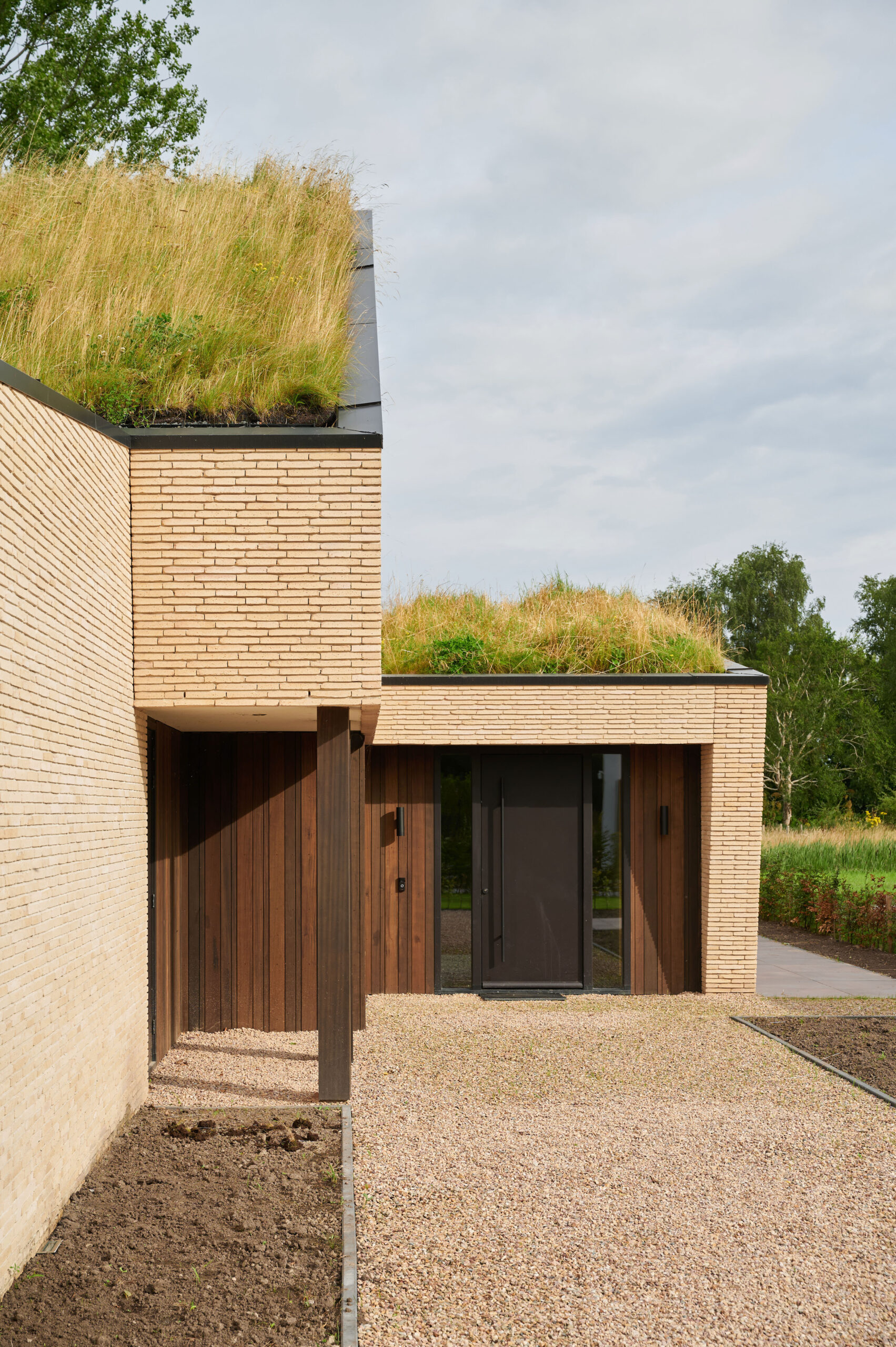 Het ontwerp, in combinatie met de duurzame materialen, heeft geleid tot kwalitatieve en hoogwaardige detaillering. Het schuin vermetselen van de gevelstenen is hiervan een mooi voorbeeld. Een integrale ontwerpaanpak heeft ervoor gezorgd dat de zonnepanelen precies in het dakvlak van de carport geplaatst konden worden. Hierdoor hebben de zonnepanelen een optimale positie, zonder als een visueel storend element het grasdak te verstoren.