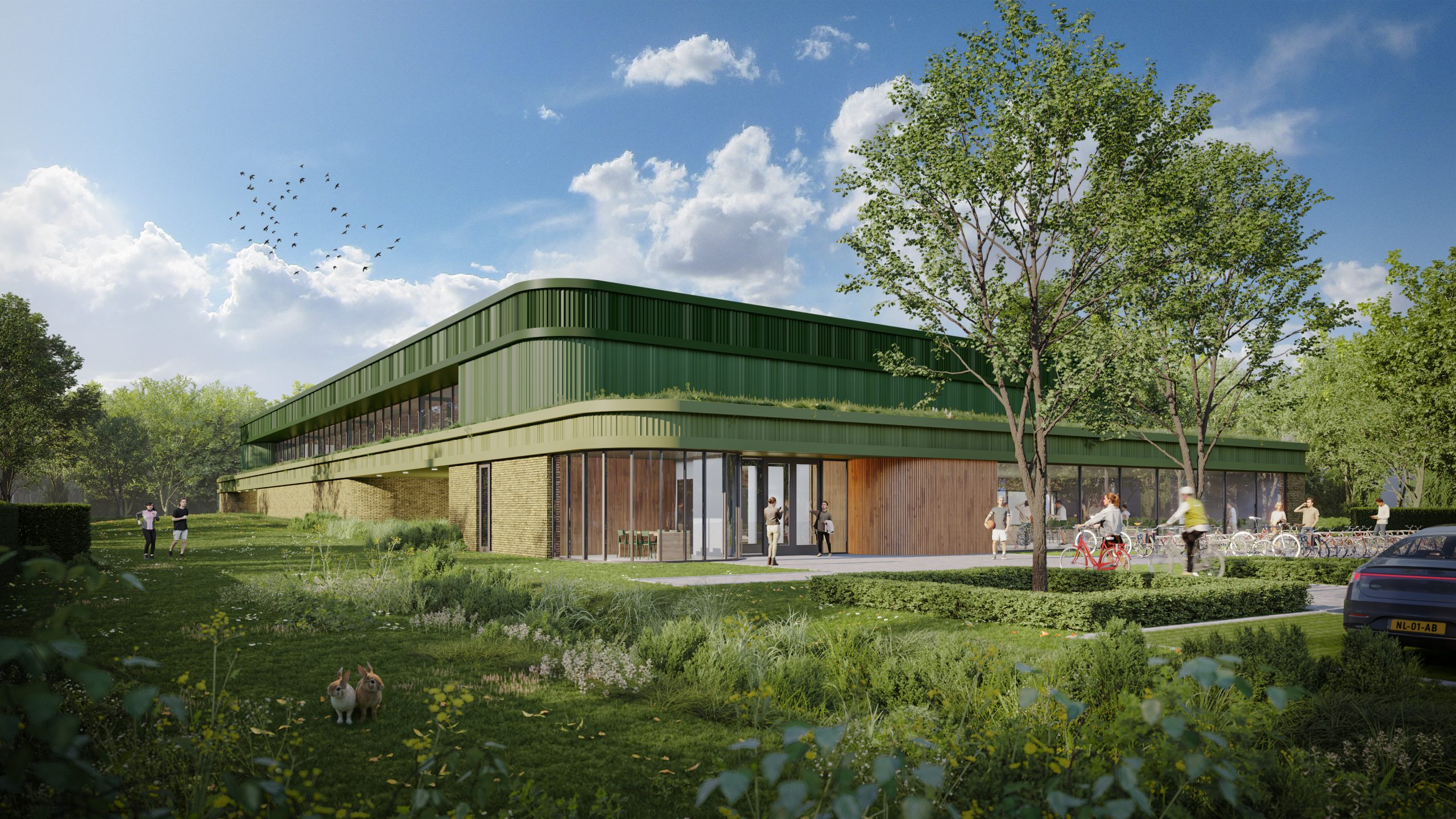 Door de gelaagdheid, plasticiteit en kleur, lijkt het gebouw gevormd te zijn uit de aarde en wil het zich nadrukkelijk nestelen in de groene omgeving, een groene omgeving waar iedereen zich thuis voelt. Inclusief de natuur.
