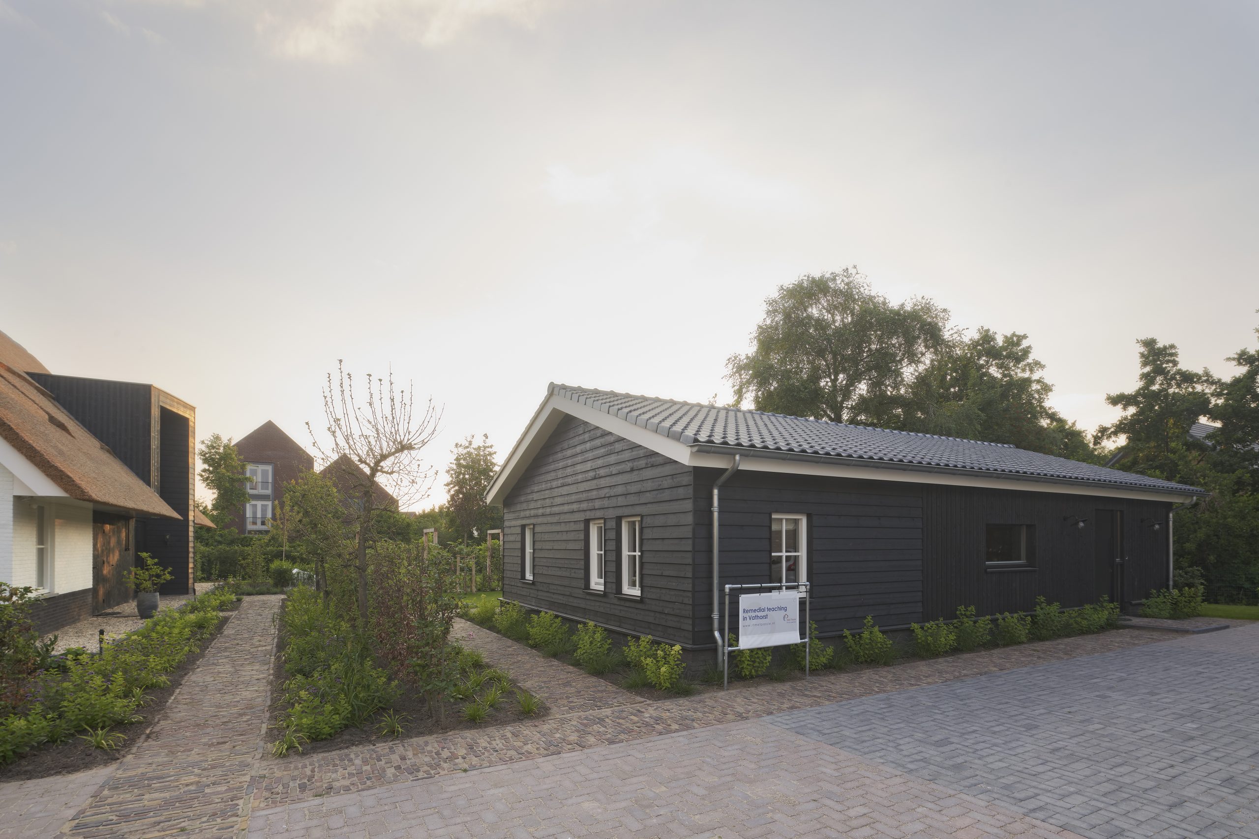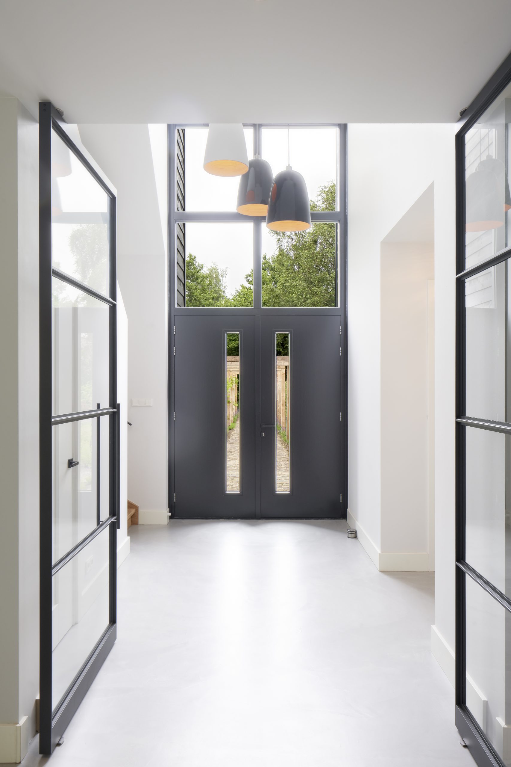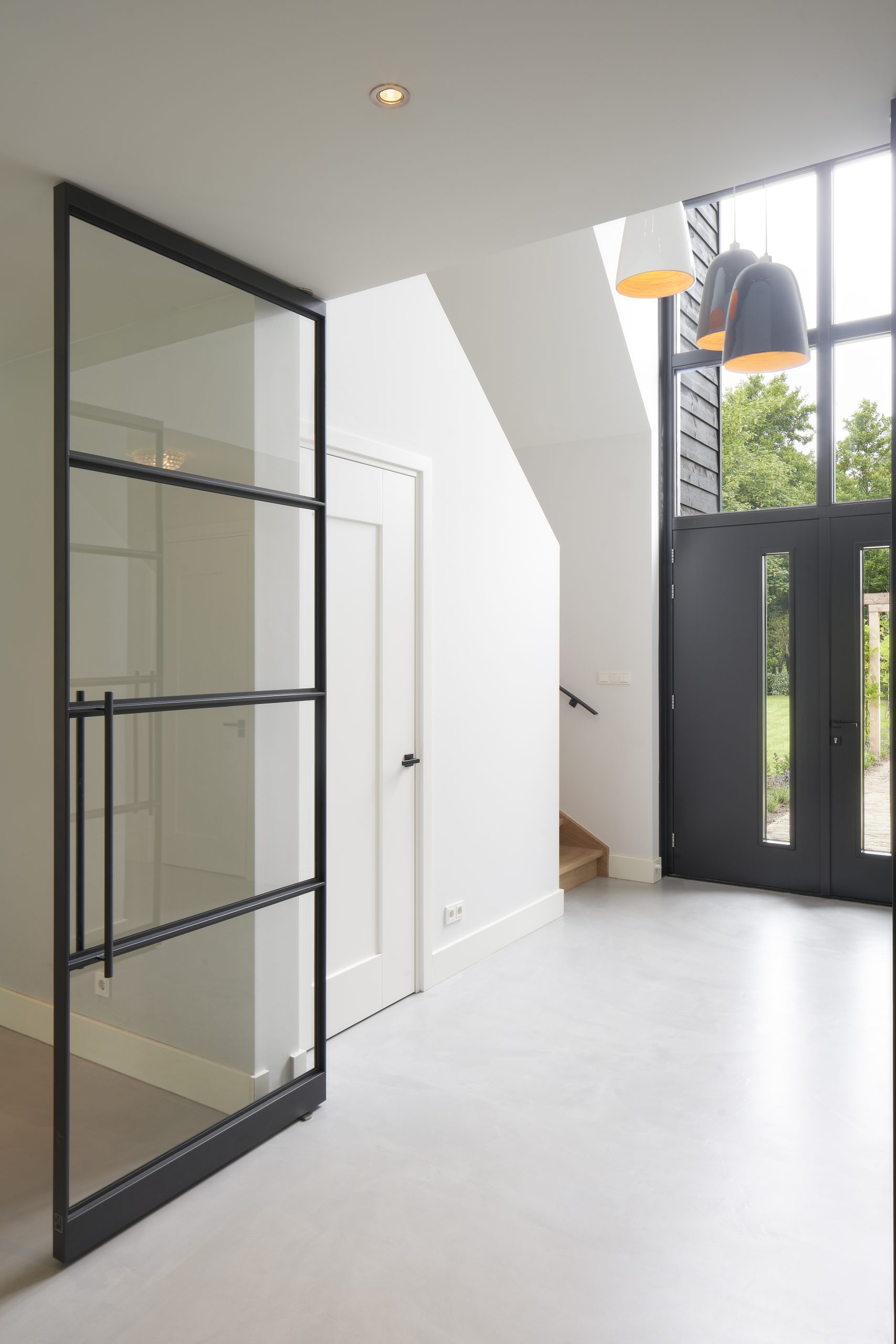 De entree is op een vanzelfsprekende, logische plek in het ontwerp gepositioneerd. Een zwarte entreepartij markeert de toegang en is verticaal doorgezet in de gevel. Deze ingreep versterkt de compositie en brengt balans tussen de strakke, moderne lijnen en de warme, landelijke uitstraling van de woning.